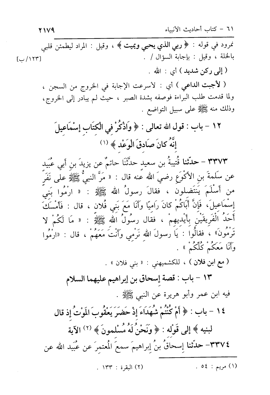 13 - بَابُ قِصَّةِ إِسْحَاقَ بْنِ إِبْرَاهِيمَ عَلَيْهِمَا السَّلاَمُ
