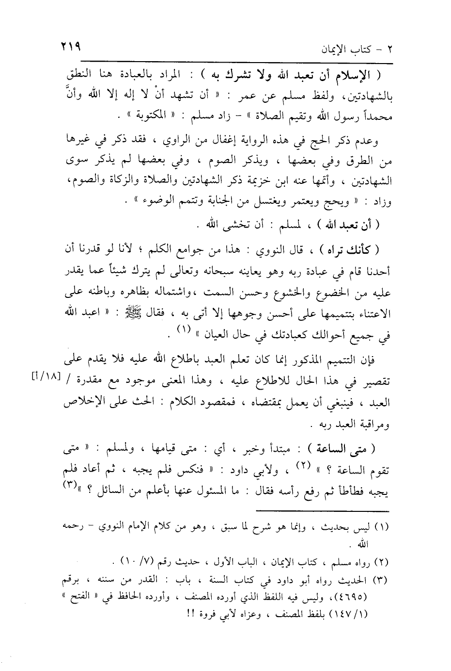 (الإسلام أن تعبد الله ولا تشرك به): المراد بالعبادة هنا النطق بالشهادتين، ولفظ مسلم عن عمر: " أن تشهد أنْ لا إله إلا الله وأنَّ محمدًا رسول الله وتقيم الصلاة"- زاد مسلم: "المكتوبة".