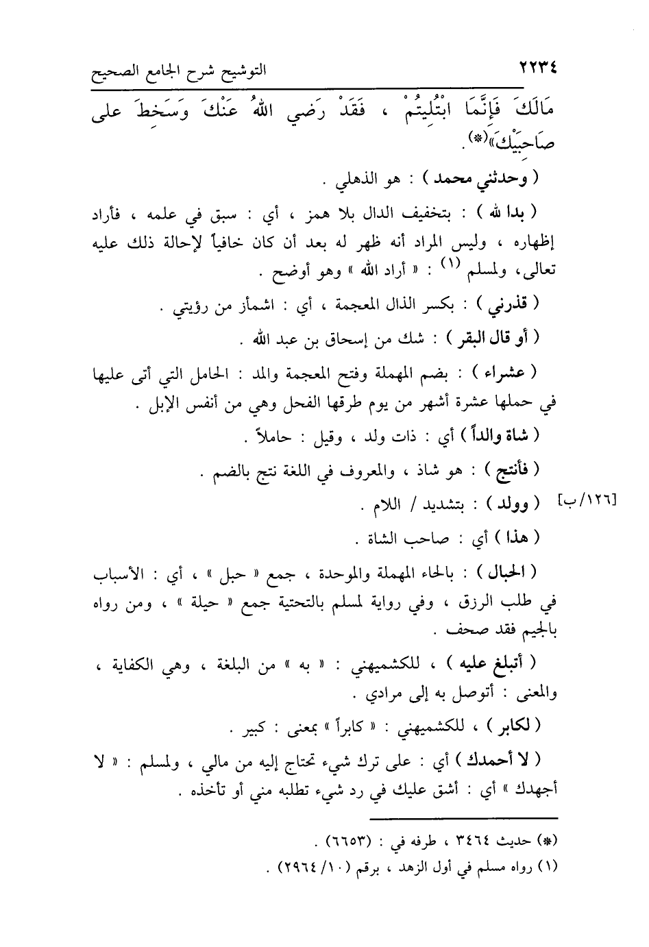 (أو قال البقر): شك من إسحاق بن عبد الله.