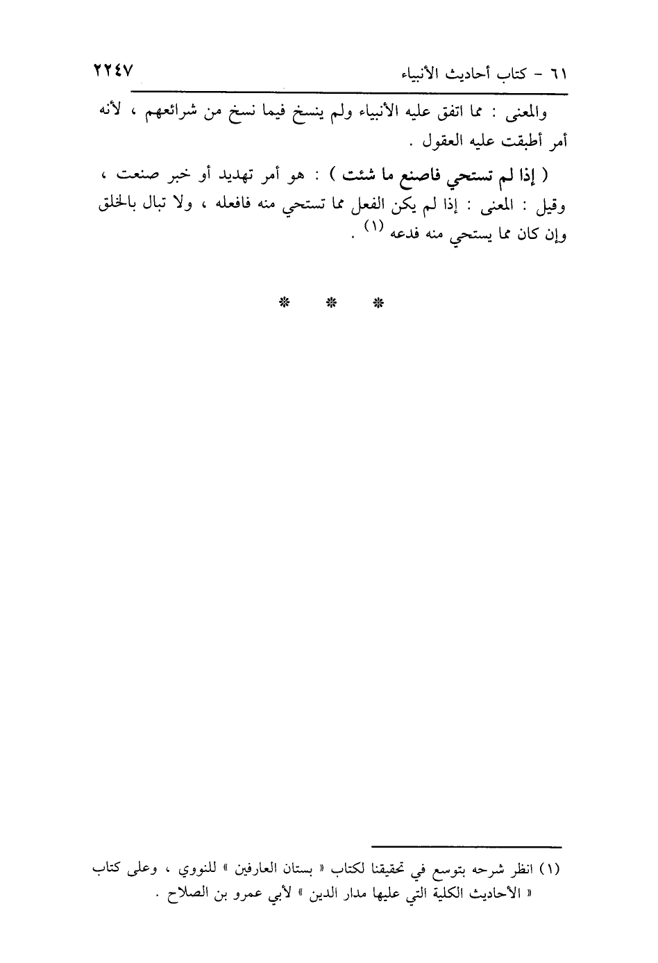 (إذا لم تستحي فاصنع ما شئت): هو أمر تهديد أو خبر صنعت، وقيل: المعنى: إذا لم يكن الفعل مما تستحي منه فافعله، ولا تبال بالخلق وإن كان مما يستحي منه فدعه.
