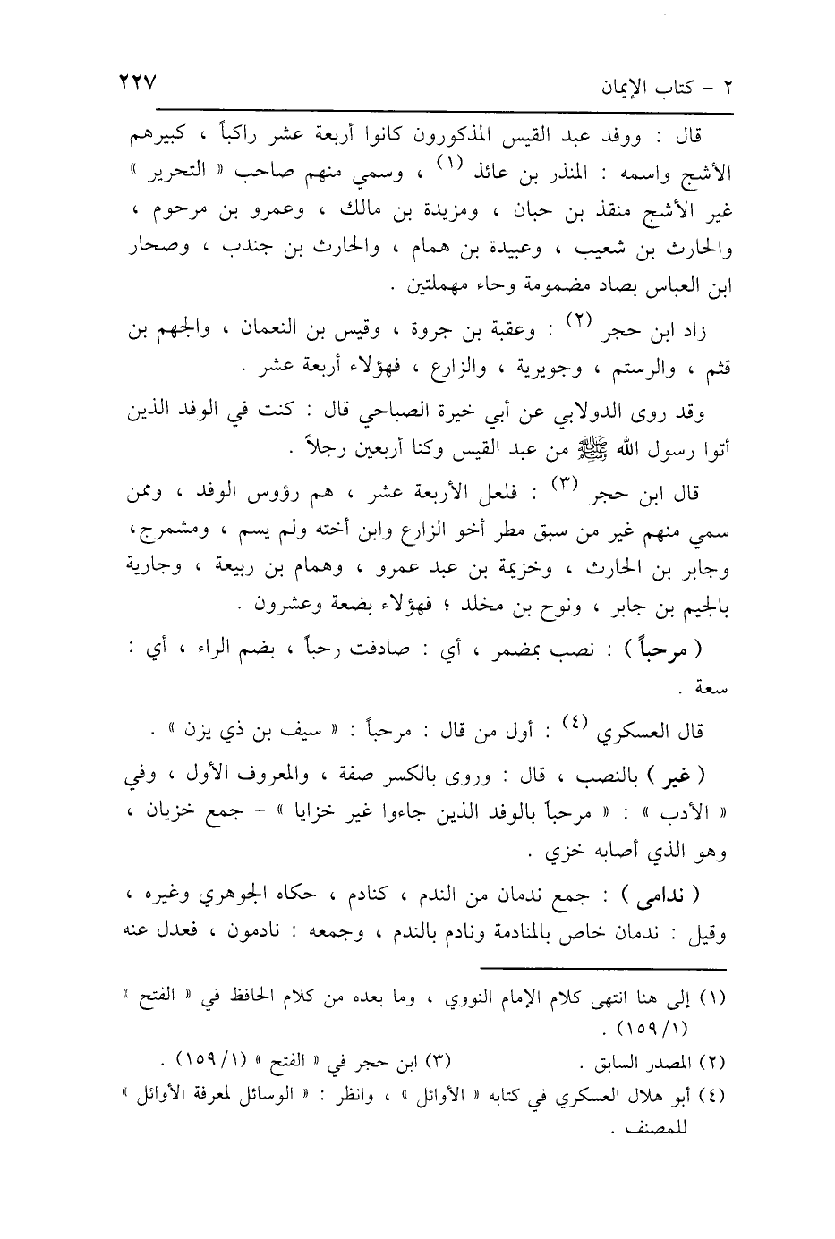 قال: ووفد عبد القيس المذكورون كانوا أربعة عشر راكبًا، كبيرهم الأشج واسمه: المنذر بن عائذ، وسمي منهم صاحب "التحرير" غير الأشج منقذ بن حبان، ومزيدة بن مالك، وعمرو بن مرحوم، والحارث بن شعيب، وعبيدة بن همام، والحارث بن جندب، وصحار بن العباس بصاد مضمومة وحاء مهملتين.
