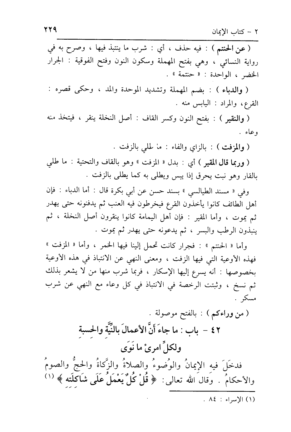 وأما "الحنتم": فجرار كانت تحمل إلينا فيها الخمر، وأما "الزفت" فهذه الأوعية التي فيها الزفت، ومعنى النهي عن الانتباذ في هذه الأوعية بخصوصها: أنه يسرع إليها الإسكار، فربما شرب منها من لا يشعر بذلك ثم نسخ، وثبتت الرخصة في الانتباذ في كل وعاء مع النهي عن شرب مسكر.