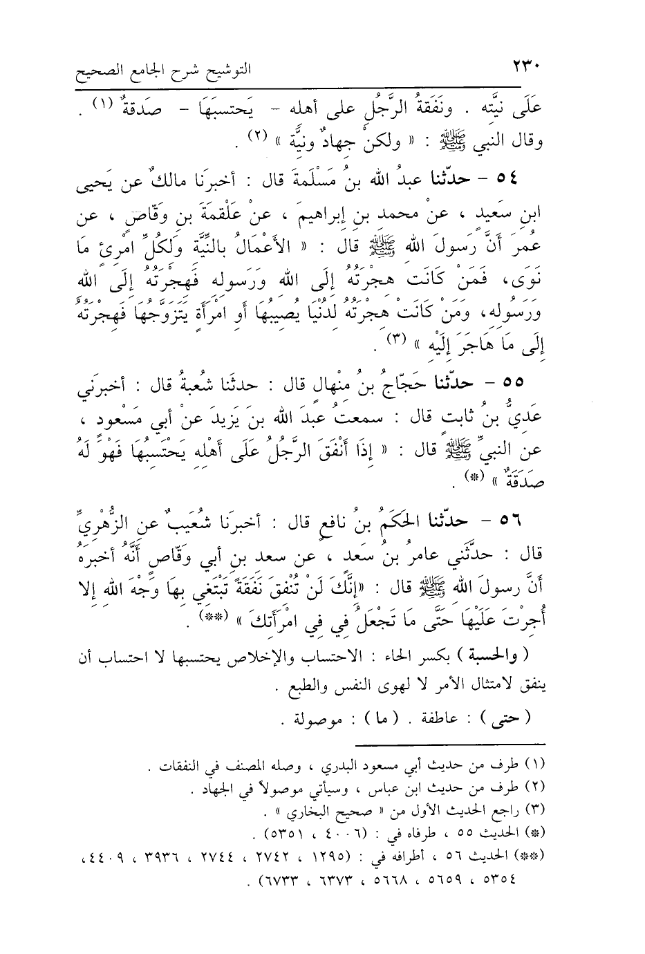 55 - حَدَّثَنَا حَجَّاجُ بْنُ مِنْهَالٍ، قَالَ: حَدَّثَنَا شُعْبَةُ، قَالَ: أَخْبَرَنِي عَدِيُّ بْنُ ثَابِتٍ، قَالَ: سَمِعْتُ عَبْدَ اللَّهِ بْنَ يَزِيدَ، عَنْ أَبِي مَسْعُودٍ عَنِ النَّبِيِّ صَلَّى اللهُ عَلَيْهِ وَسَلَّمَ قَالَ: «إِذَا أَنْفَقَ الرَّجُلُ عَلَى أَهْلِهِ يَحْتَسِبُهَا فَهُوَ لَهُ صَدَقَةٌ».