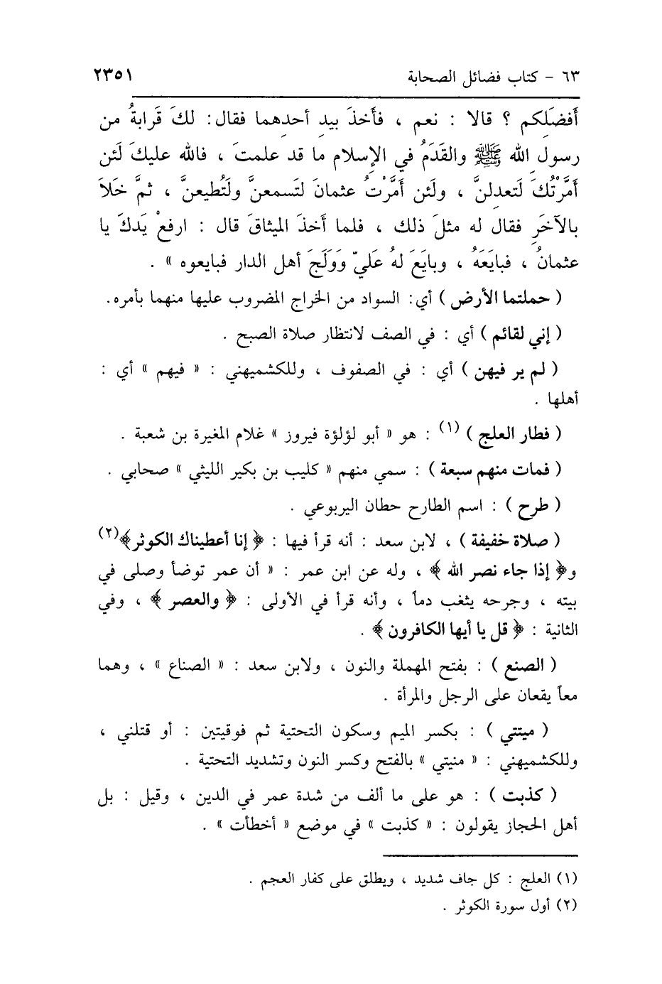 (فطار العلج) (1): هو "أبو لؤلؤة فيروز" غلام المغيرة بن شعبة.