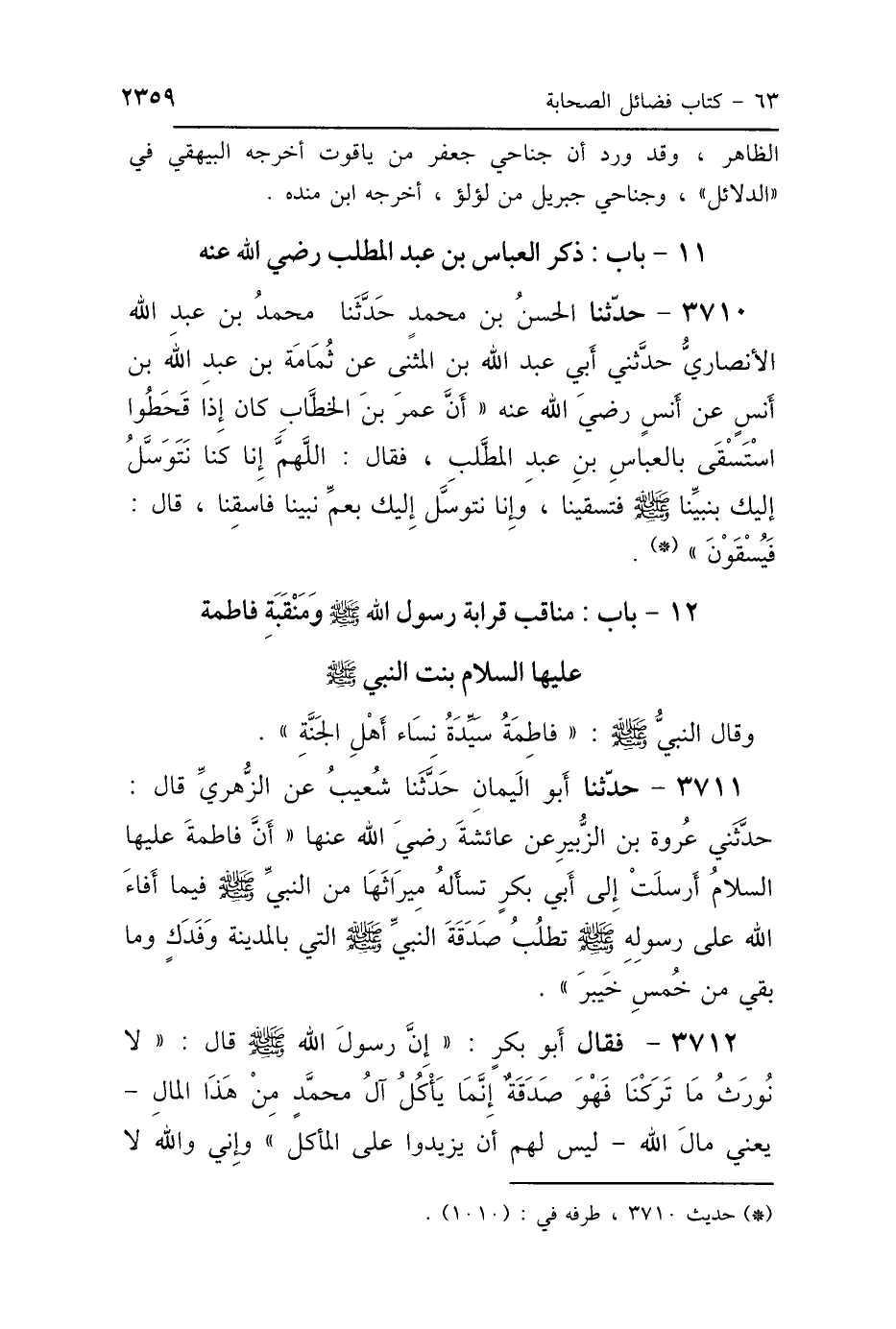 12 - بَابُ مَنَاقِبِ قَرَابَةِ رَسُولِ اللَّهِ صَلَّى اللهُ عَلَيْهِ وَسَلَّمَ، وَمَنْقَبَةِ فَاطِمَةَ عَلَيْهَا السَّلاَمُ بِنْتِ النَّبِيِّ صَلَّى اللهُ عَلَيْهِ وَسَلَّمَ