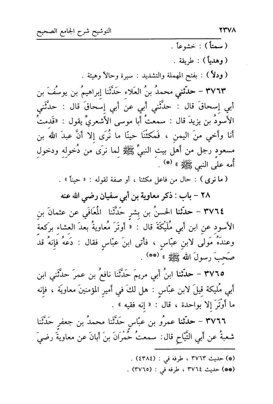 28 - بَابُ ذِكْرِ مُعَاوِيَةَ رَضِيَ اللَّهُ عَنْهُ