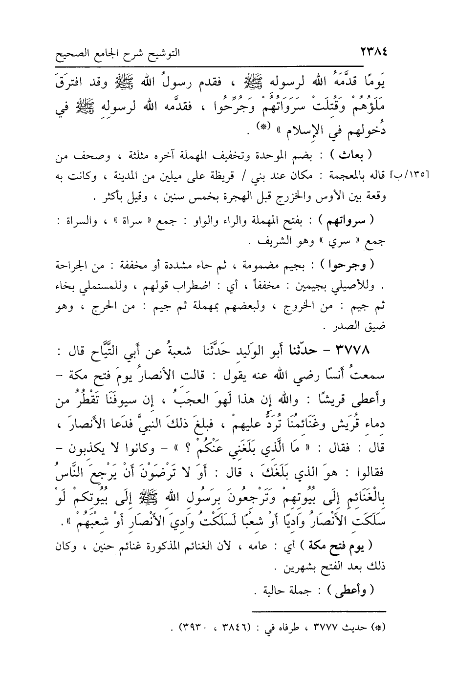 (بعاث): بضم الموحدة وتخفيف المهملة آخره مثلثة، وصحف من قاله بالمعجمة: مكان عند بني قريظة على ميلين من المدينة، وكانت به وقعة بين الأوس والخزرج قبل الهجرة بخمس سنين، وقيل بأكثر.