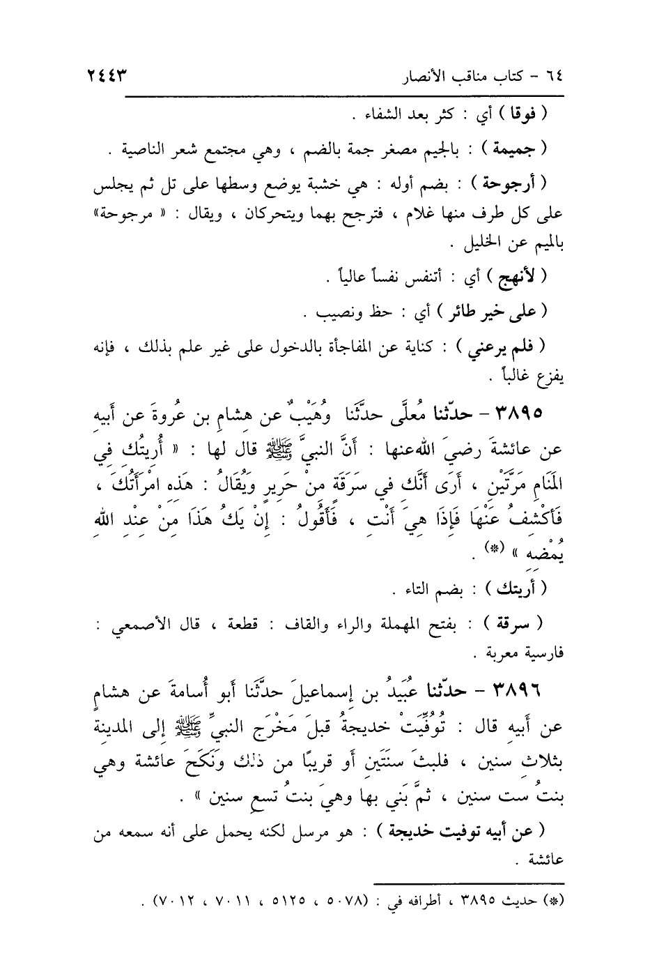 (جميمة): بالجيم مصغر جمة بالضم، وهي مجتمع شعر الناصية.