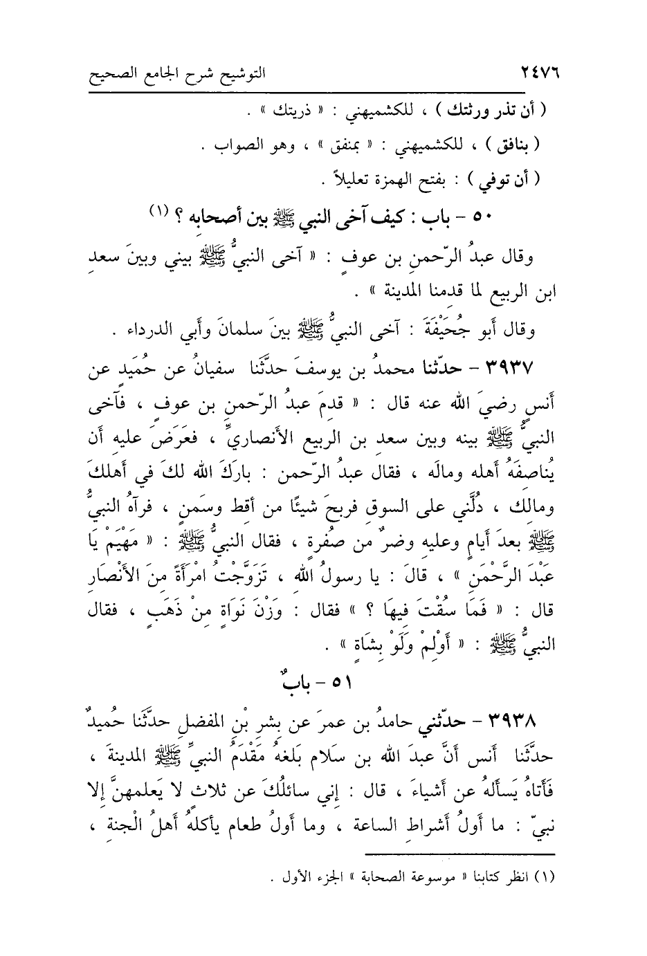 50 - بَابٌ: كَيْفَ آخَى النَّبِيُّ صَلَّى اللهُ عَلَيْهِ وَسَلَّمَ بَيْنَ أَصْحَابِهِ