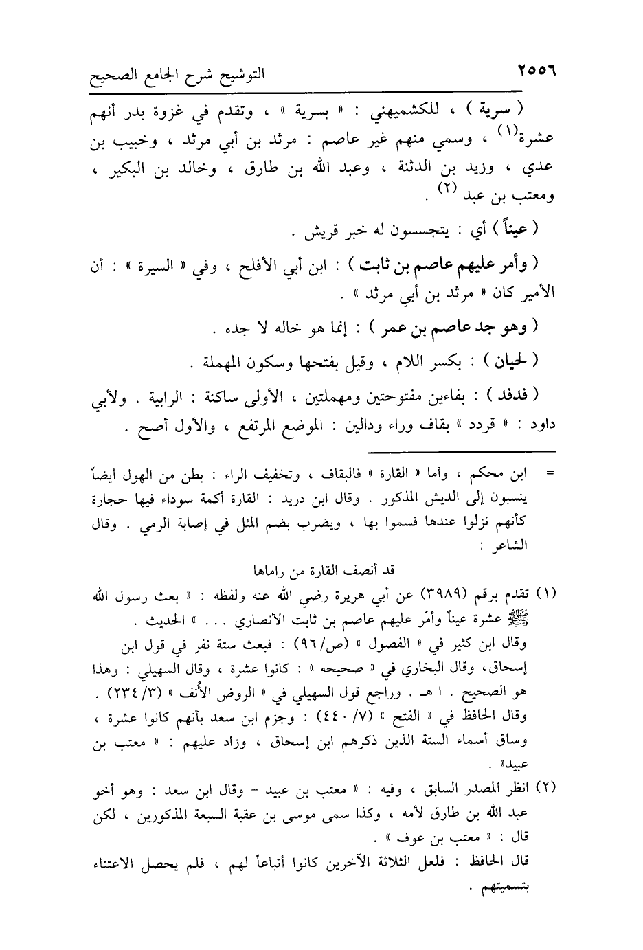 (وأمر عليهم عاصم بن ثابت): ابن أبي الأفلح، وفي "السيرة": أن الأمير كان "مرثد بن أبي مرثد".