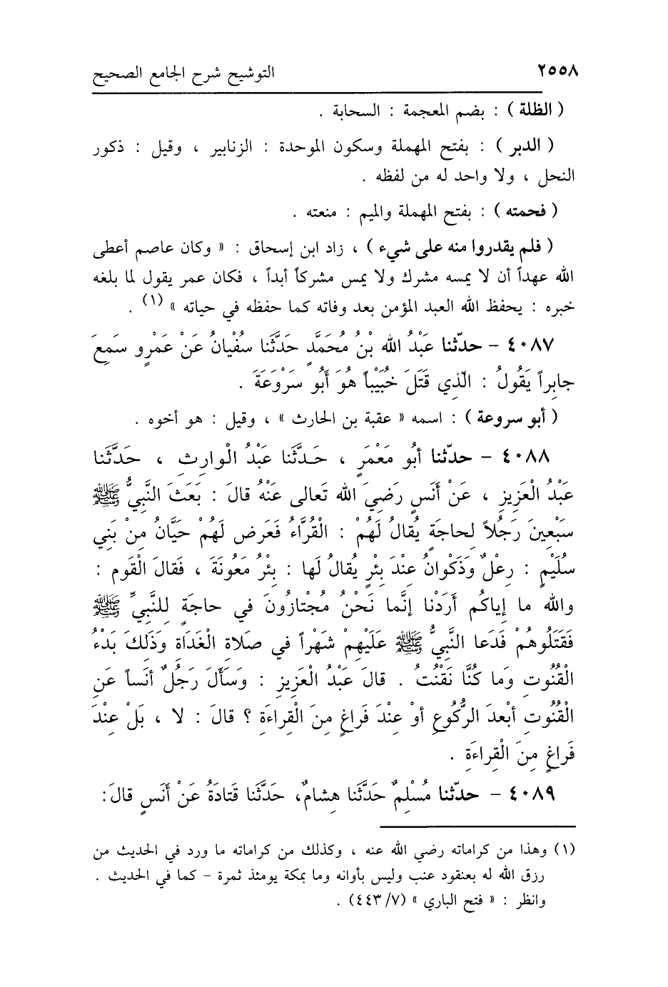 4087 - حَدَّثَنَا عَبْدُ اللَّهِ بْنُ مُحَمَّدٍ، حَدَّثَنَا سُفْيَانُ، عَنْ عَمْرٍو، سَمِعَ جَابِرًا، يَقُولُ: «الَّذِي قَتَلَ خُبَيْبًا، هُوَ أَبُو سِرْوَعَةَ».