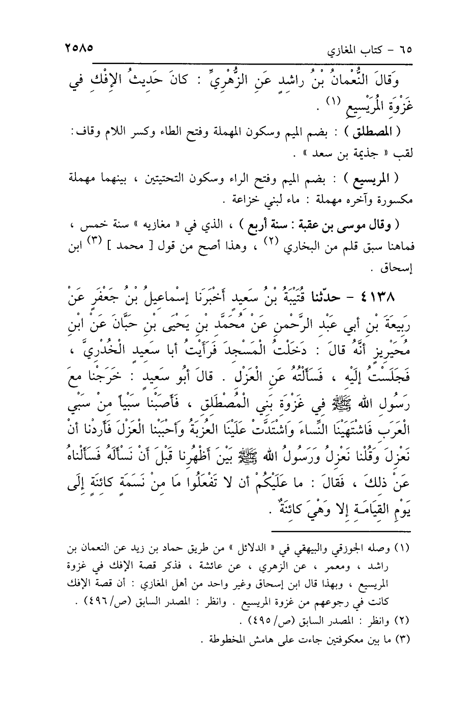 وَقَالَ النُّعْمَانُ بْنُ رَاشِدٍ عَنِ الزُّهْرِيِّ كَانَ حَدِيثُ الإِفْكِ فِي غَزْوَةِ المُرَيْسِيعِ.