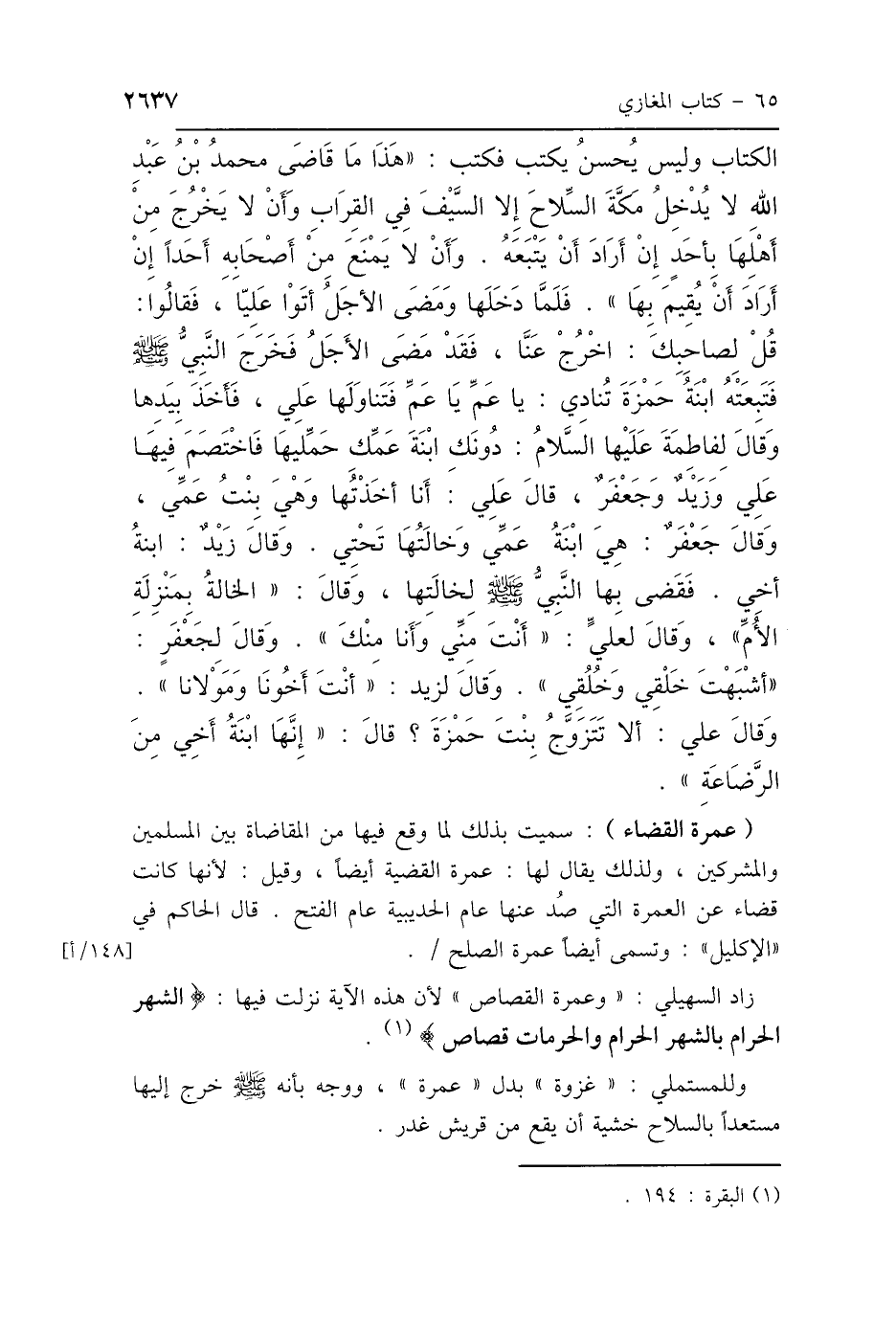 زاد السهيلي: "وعمرة القصاص" لأن هذه الآية نزلت فيها: {والشهر الحرام بالشهر الحرام والحرمات قصاص}.