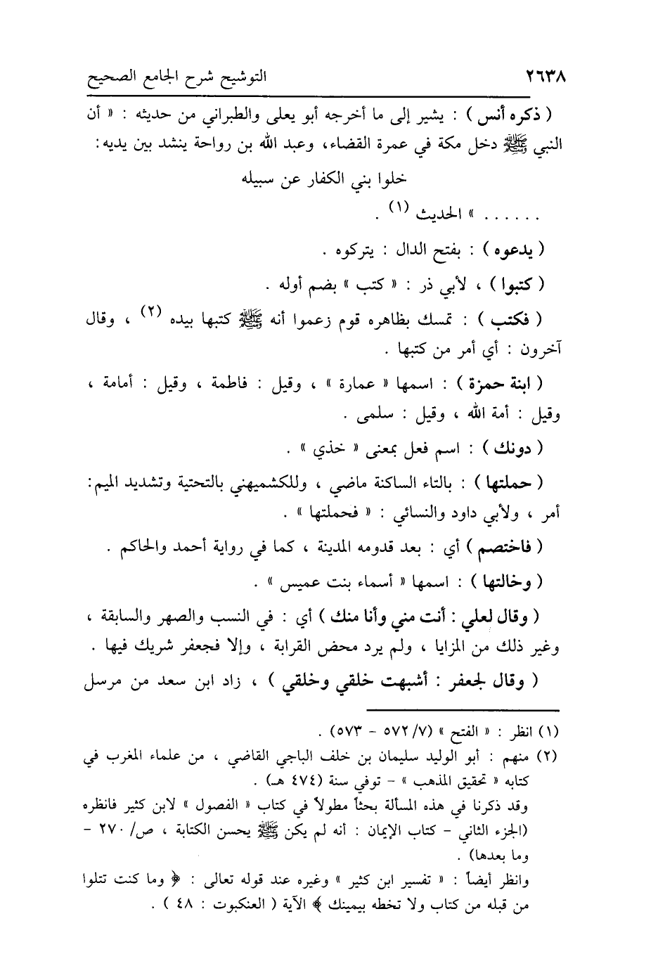 (وقال لجعفر: أشبهت خلقي وخلقي)، زاد ابن سعد من مرسل