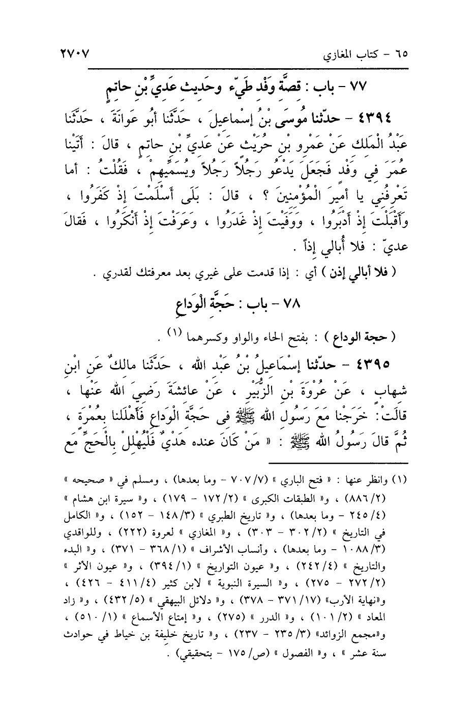77 - بَابُ قِصَّةِ وَفْدِ طَيِّئٍ وَحَدِيثُ عَدِيِّ بْنِ حَاتِمٍ