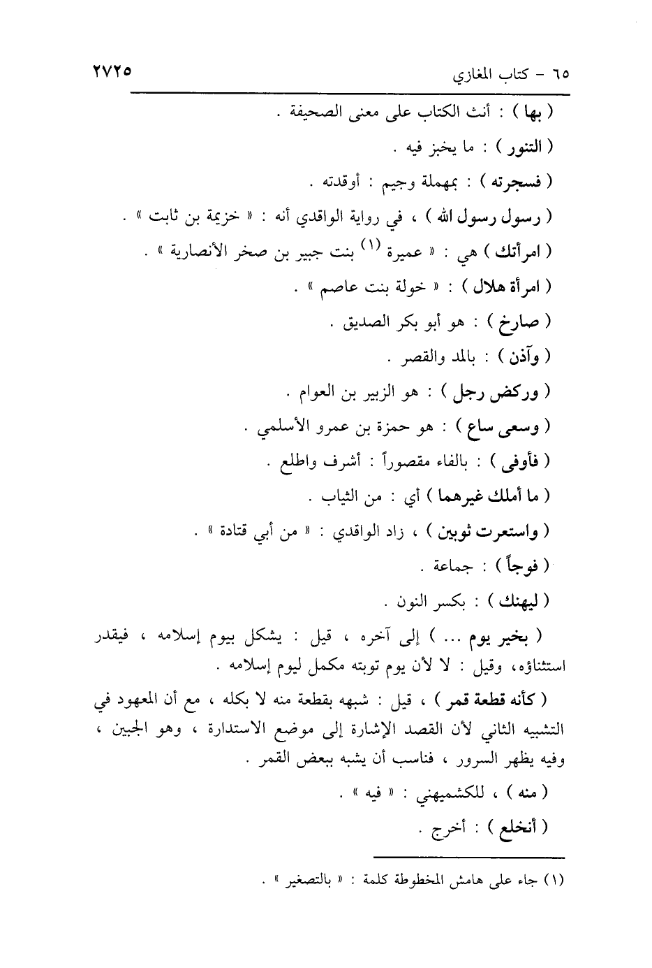 (واستعرت ثوبين)، زاد الواقدي: "من أبي قتادة".