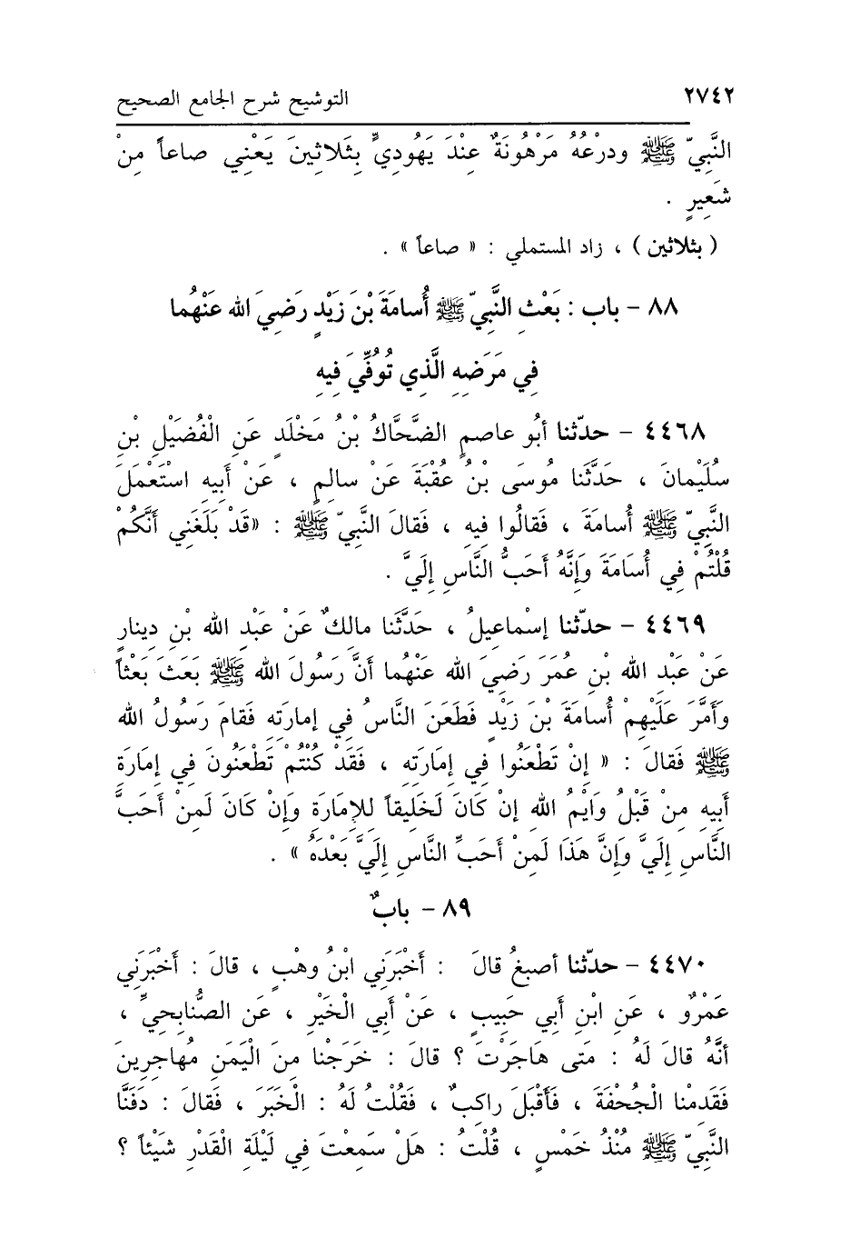 88 - بَابُ بَعْثِ النَّبِيِّ صَلَّى اللهُ عَلَيْهِ وَسَلَّمَ أُسَامَةَ بْنَ زَيْدٍ رَضِيَ اللَّهُ عَنْهُمَا، فِي مَرَضِهِ الَّذِي تُوُفِّيَ فِيهِ