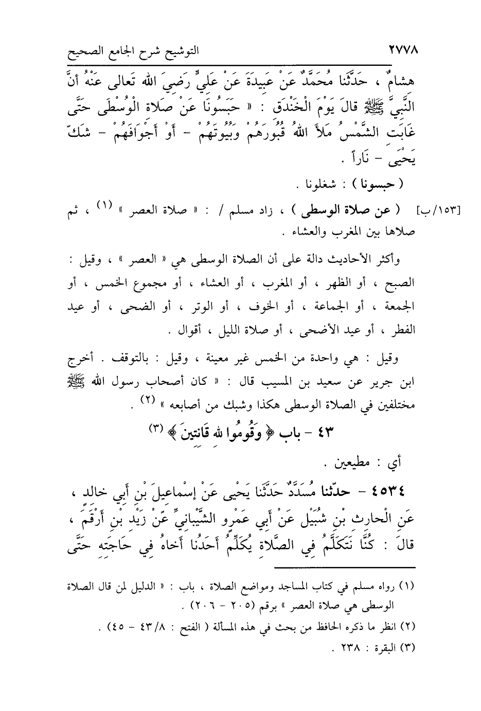 وأكثر الأحاديث دالة على أن الصلاة الوسطى هي "العصر"، وقيل: الصبح، أو الظهر، أو المغرب، أو العشاء، أو مجموع الخمس، أو الجمعة، أو الجماعة، أو الخوف، أو الوتر، أو الضحى، أو عيد الفطر، أو عيد الأضحى، أو صلاة الليل، أقوال.