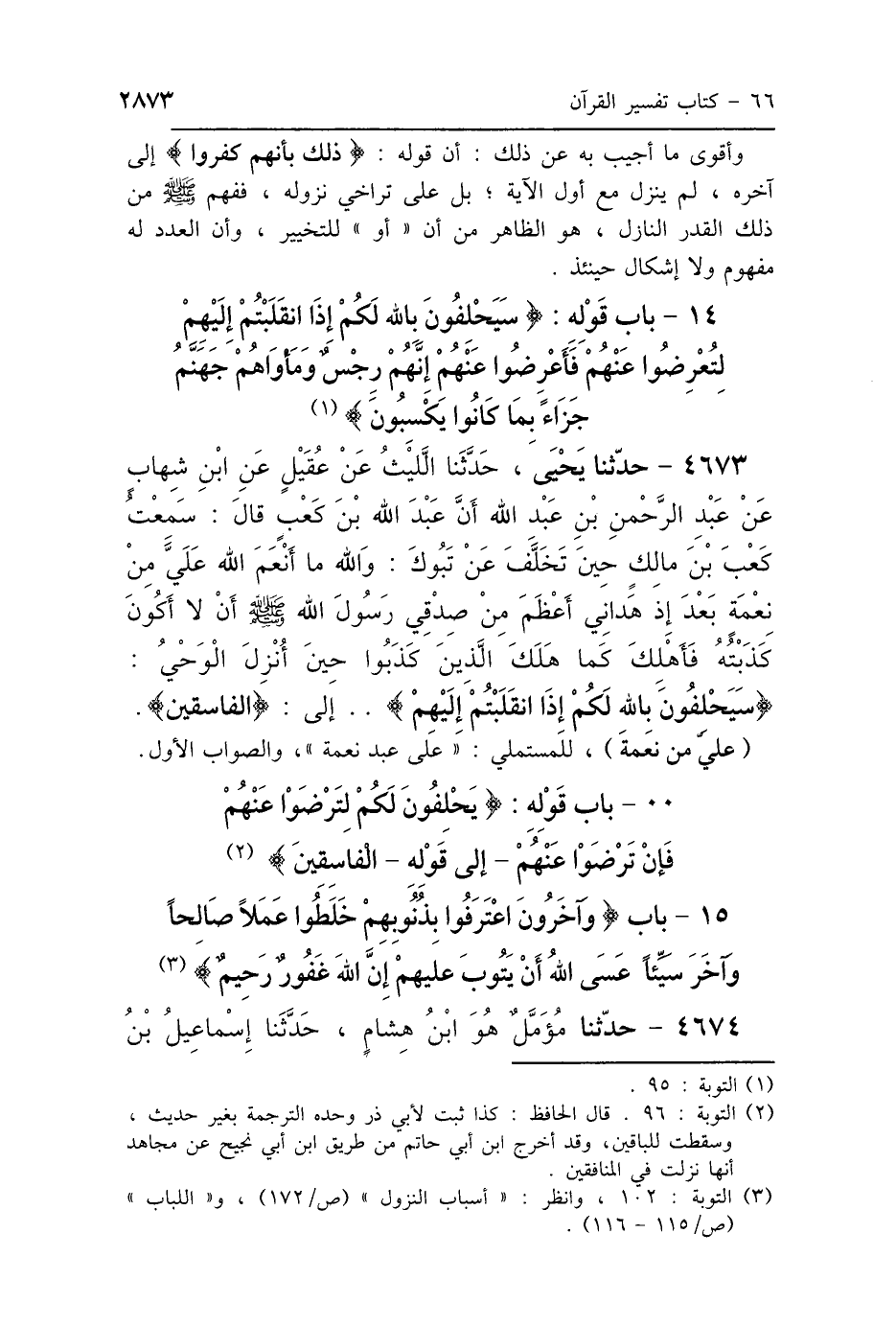 14 - بَابُ قَوْلِهِ: {سَيَحْلِفُونَ بِاللَّهِ لَكُمْ إِذَا انْقَلَبْتُمْ إِلَيْهِمْ لِتُعْرِضُوا عَنْهُمْ، فَأَعْرِضُوا عَنْهُمْ إِنَّهُمْ رِجْسٌ وَمَأْوَاهُمْ جَهَنَّمُ جَزَاءً بِمَا كَانُوا يَكْسِبُونَ} [التوبة: 95]
