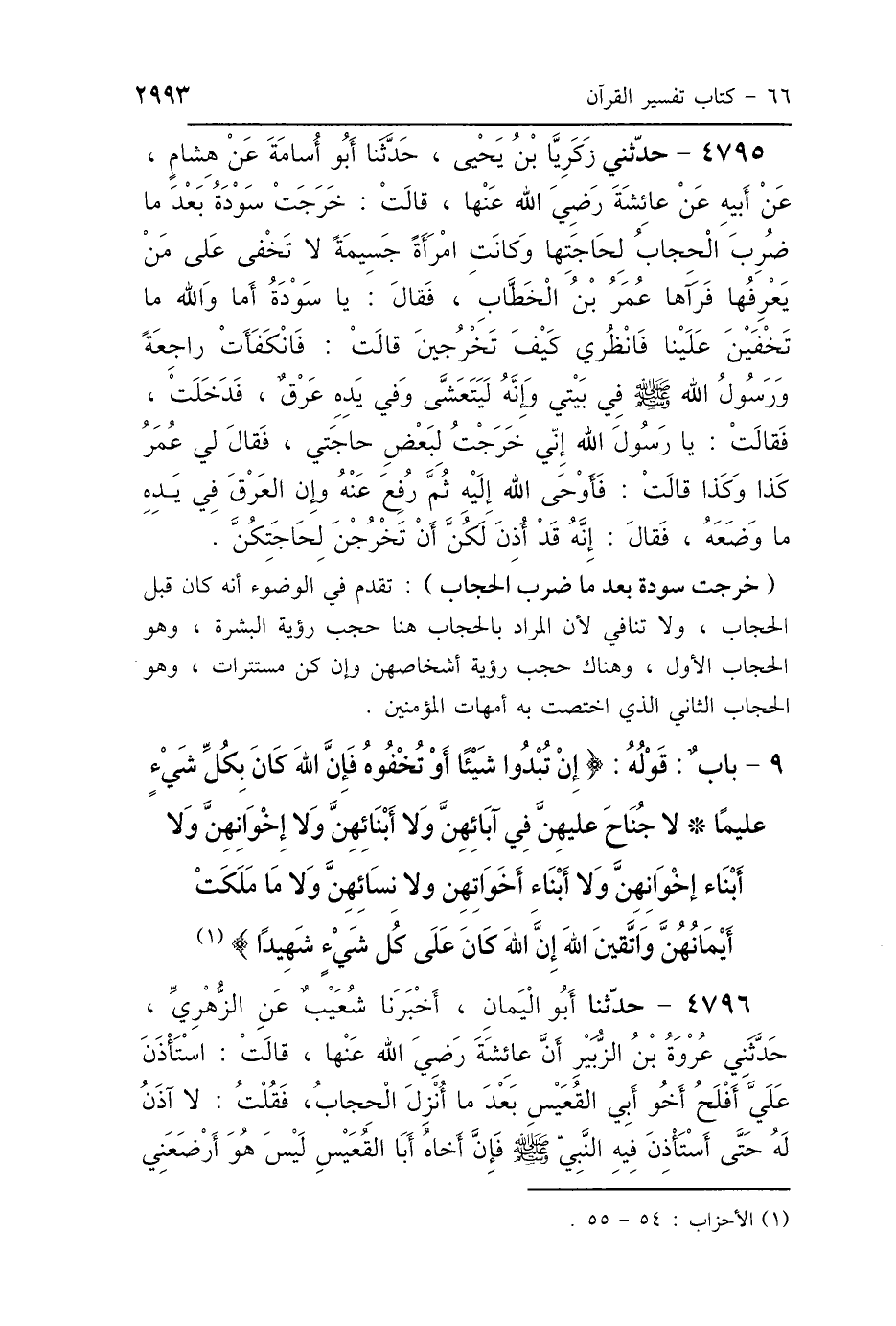9 - بَابُ قَوْلِهِ: {إِنْ تُبْدُوا شَيْئًا أَوْ تُخْفُوهُ فَإِنَّ اللَّهَ كَانَ بِكُلِّ شَيْءٍ عَلِيمًا لاَ جُنَاحَ عَلَيْهِنَّ فِي آبَائِهِنَّ وَلاَ أَبْنَائِهِنَّ وَلاَ إِخْوَانِهِنَّ وَلاَ أَبْنَاءِ إِخْوَانِهِنَّ وَلاَ أَبْنَاءِ أَخَوَاتِهِنَّ وَلاَ نِسَائِهِنَّ وَلاَ مَا مَلَكَتْ أَيْمَانُهُنَّ وَاتَّقِينَ اللَّهَ إِنَّ اللَّهَ كَانَ عَلَى كُلِّ شَيْءٍ شَهِيدًا} [الأحزاب: 55]