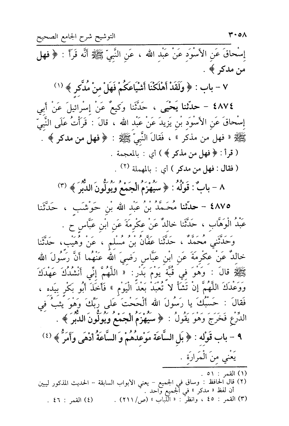 7 - بَابُ {وَلَقَدْ أَهْلَكْنَا أَشْيَاعَكُمْ فَهَلْ مِنْ مُدَّكِرٍ} [القمر: 51]