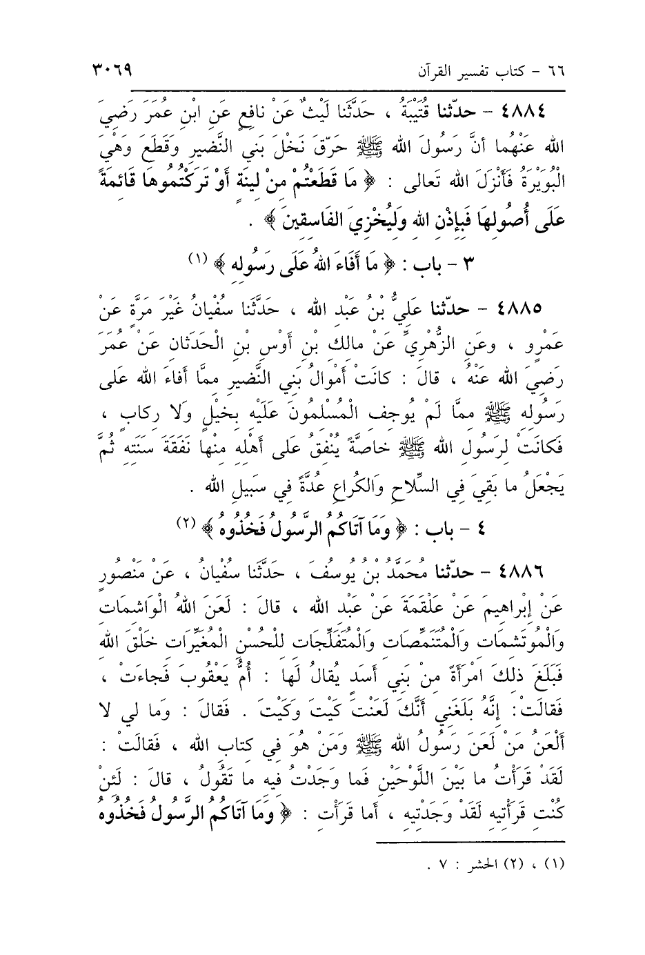 3 - بَابُ قَوْلِهِ: {مَا أَفَاءَ اللَّهُ عَلَى رَسُولِهِ} [الحشر: 7]