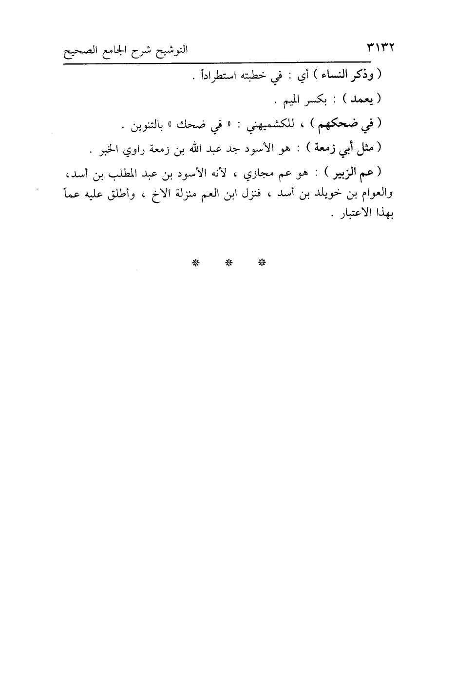 (عم الزبير): هو عم مجازي، لأنه الأسود بن عبد المطلب. بن أسد، والعوام بن خويلد بن أسد، فنزل ابن العم منزلة الأخ، وأطلق عليه عمًا بهذا الاعتبار.