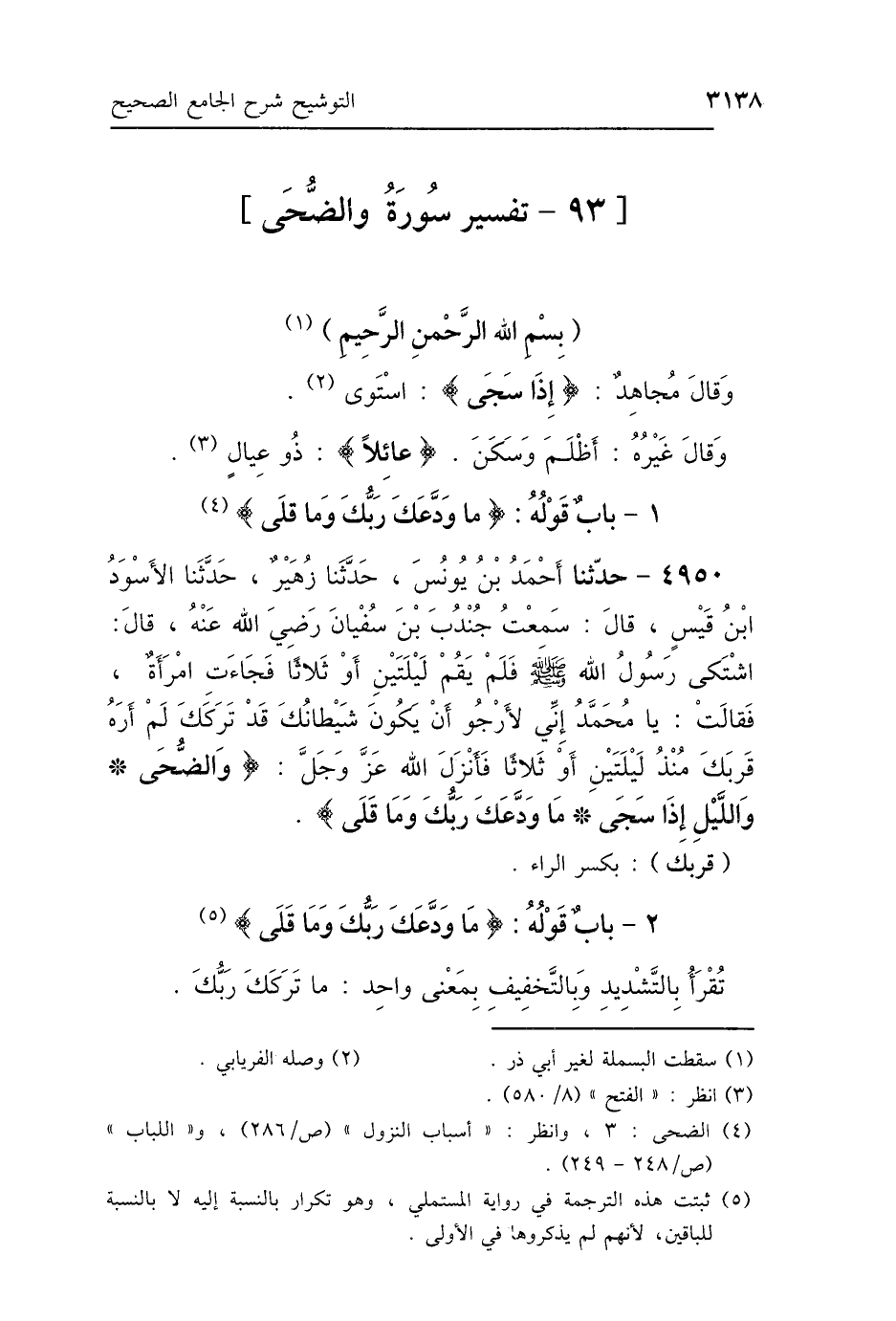 1 - بَابُ {مَا وَدَّعَكَ رَبُّكَ وَمَا قَلَى} [الضحى: 3]