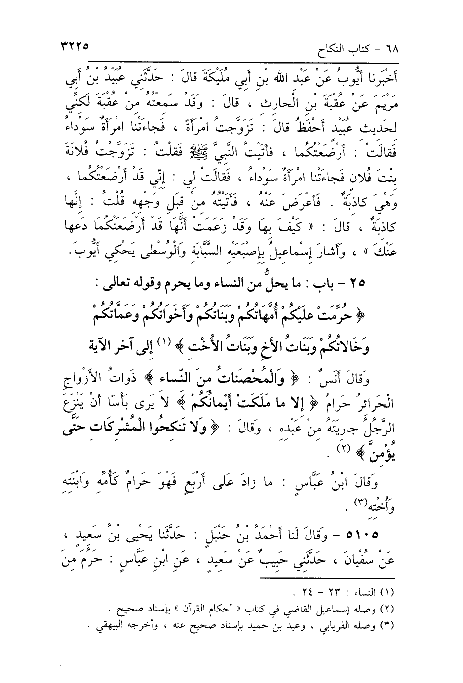 25 - بَابُ مَا يَحِلُّ مِنَ النِّسَاءِ وَمَا يَحْرُمُ وَقَوْلِهِ تَعَالَى: {حُرِّمَتْ عَلَيْكُمْ أُمَّهَاتُكُمْ وَبَنَاتُكُمْ وَأَخَوَاتُكُمْ وَعَمَّاتُكُمْ وَخَالاَتُكُمْ وَبَنَاتُ الأَخِ وَبَنَاتُ الأُخْتِ} [النساء: 23]- إِلَى آخِرِ الآيَتَيْنِ إِلَى قَوْلِهِ - {إِنَّ اللَّهَ كَانَ عَلِيمًا حَكِيمًا} [النساء: 11]