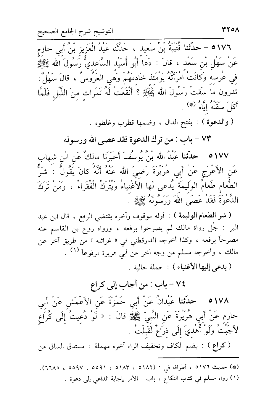 5177 - حَدَّثَنَا عَبْدُ اللَّهِ بْنُ يُوسُفَ، أَخْبَرَنَا مَالِكٌ، عَنِ ابْنِ شِهَابٍ، عَنِ الأَعْرَجِ، عَنْ أَبِي هُرَيْرَةَ رَضِيَ اللَّهُ عَنْهُ، أَنَّهُ كَانَ يَقُولُ: «شَرُّ الطَّعَامِ طَعَامُ الوَلِيمَةِ، يُدْعَى لَهَا الأَغْنِيَاءُ وَيُتْرَكُ الفُقَرَاءُ، وَمَنْ تَرَكَ الدَّعْوَةَ فَقَدْ عَصَى اللَّهَ وَرَسُولَهُ صَلَّى اللهُ عَلَيْهِ وَسَلَّمَ».