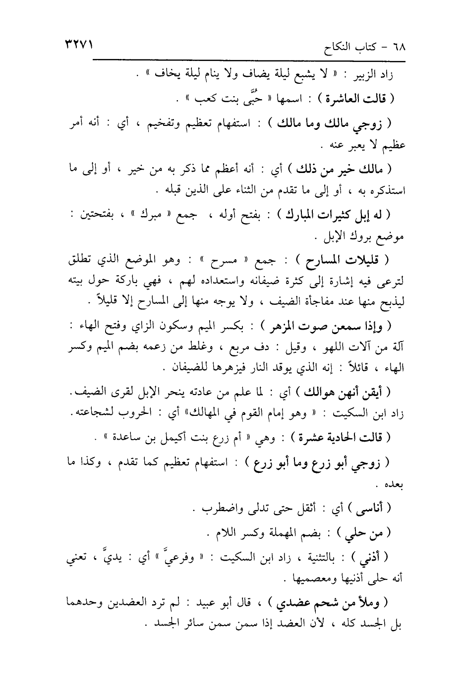(زوجي مالك وما مالك): استفهام تعظيم وتفخيم، أي: أنَّه أمر عظيم لا يعبر عنه.