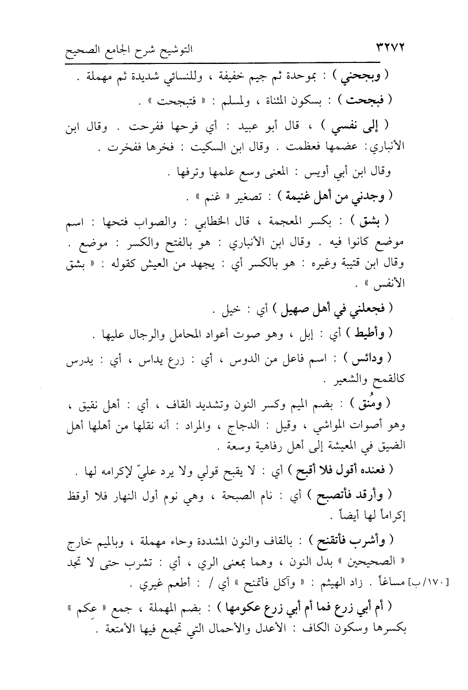 (بشق): بكسر المعجمة، قال الخطابي: والصواب فتحها: اسم موضع كانوا فيه. وقال ابن الأنباري: هو بالفتح والكسر: موضع. وقال ابن قتيبة وغيره: هو بالكسر أي: يجهد من العيش كقوله: "بشق الأنفس".