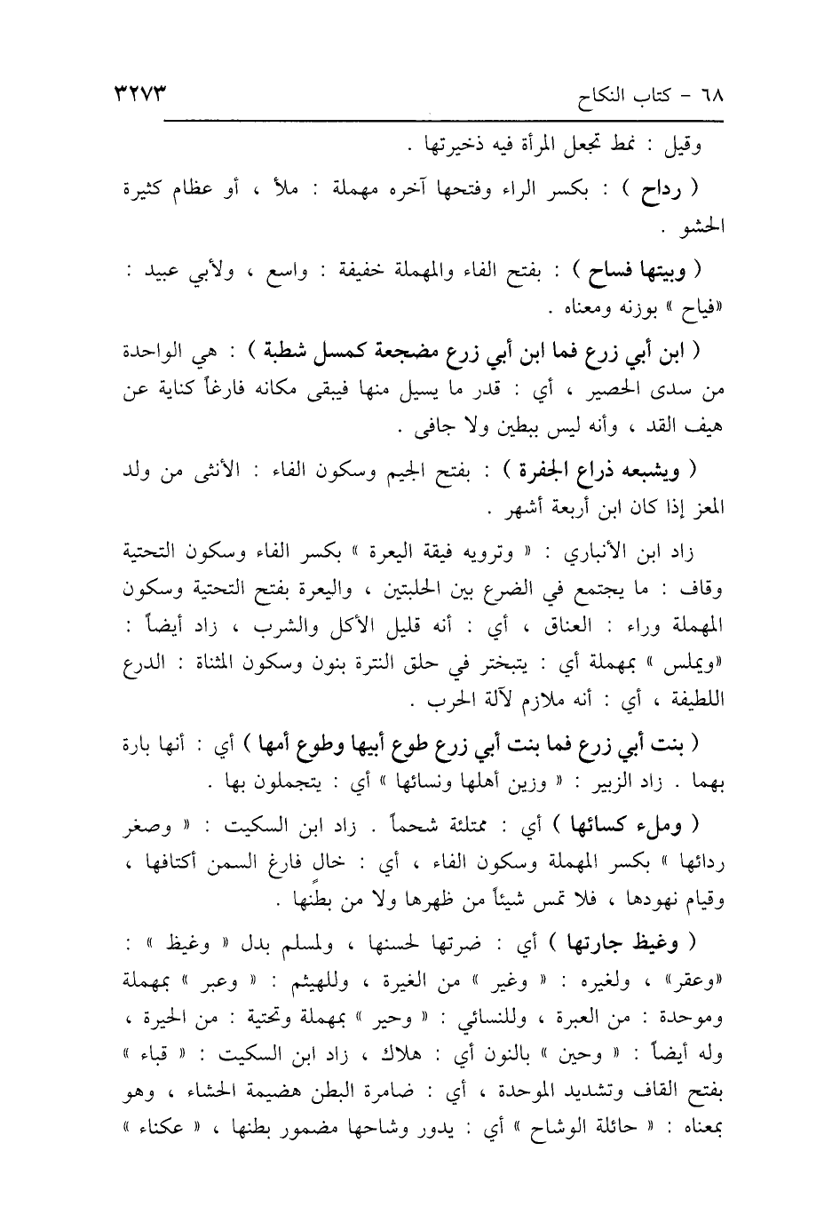 (ابن أبي زرع فما ابن أبي زرع مضجعة كمسل شطبة): هي الواحدة من سدى الحصير، أي: قدر ما يسيل منها فيبقى مكانه فارغًا كناية عن هيف القد، وأنه ليس ببطين ولا جافى.