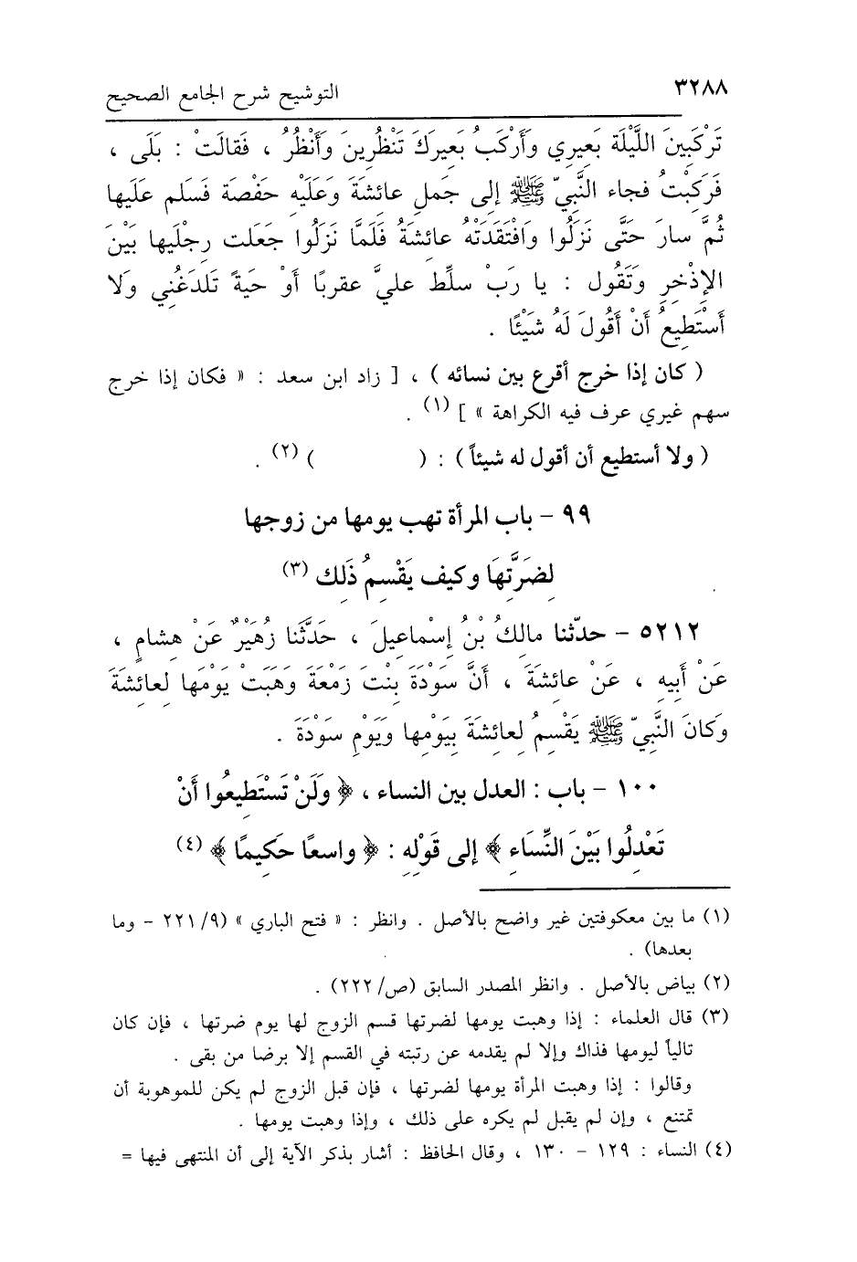100 - بَابُ العَدْلِ بَيْنَ النِّسَاءِ {وَلَنْ تَسْتَطِيعُوا أَنْ تَعْدِلُوا بَيْنَ النِّسَاءِ} [النساء: 129]- إِلَى قَوْلِهِ - {وَاسِعًا حَكِيمًا} [النساء: 130]