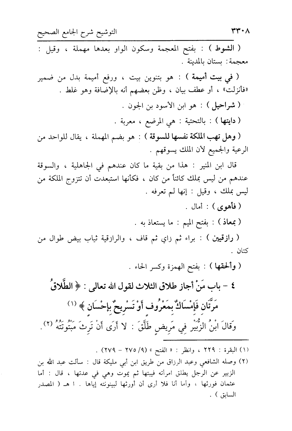 (في بيت أميمة): هو بتنوين بيت، ورفع أميمة بدل من ضمير "فأنزلت"، أو عطف بيان، وظن بعضهم أنه بالإضافة وهو غلط.