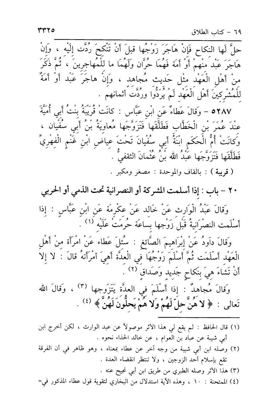 20 - بَابُ إِذَا أَسْلَمَتِ المُشْرِكَةُ أَوِ النَّصْرَانِيَّةُ تَحْتَ الذِّمِّيِّ أَوِ الحَرْبِيِّ
