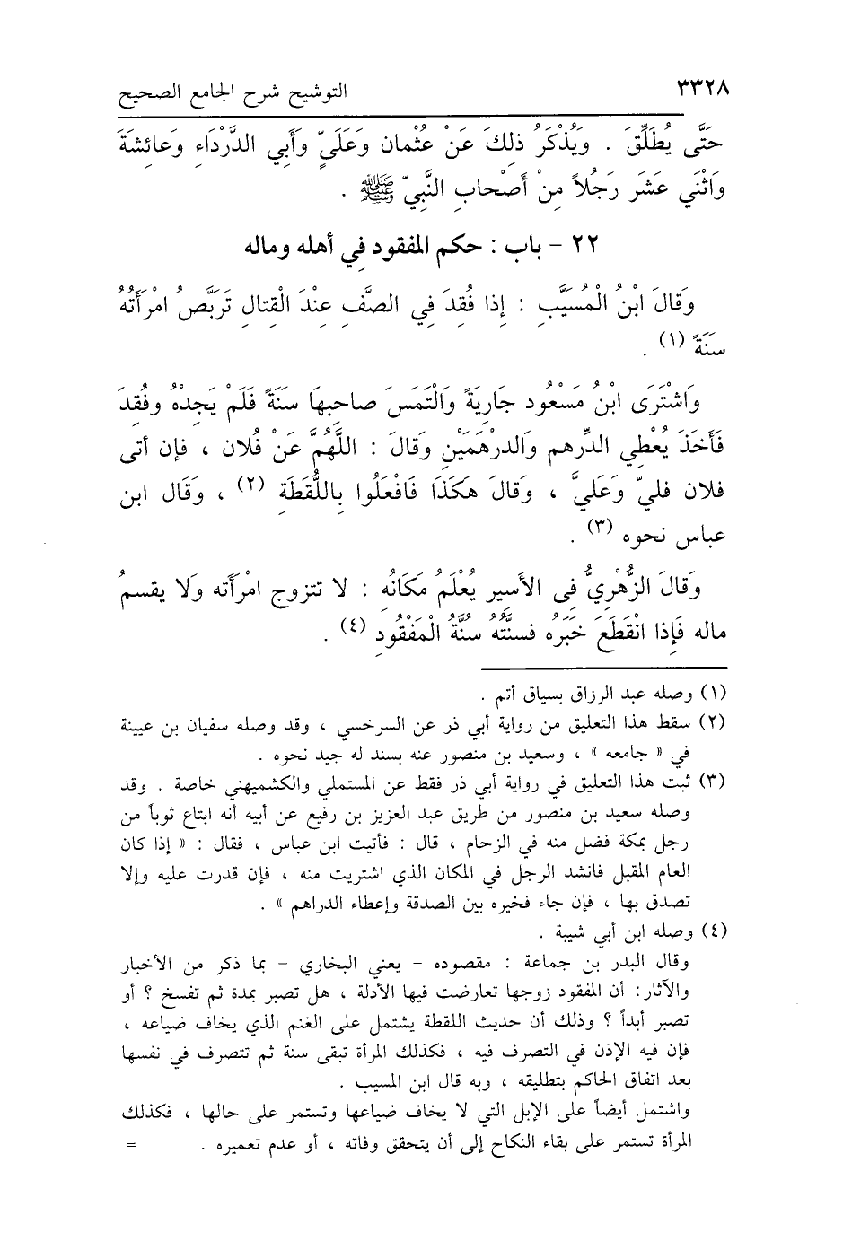 22 - بَابُ حُكْمِ المَفْقُودِ فِي أَهْلِهِ وَمَالِهِ