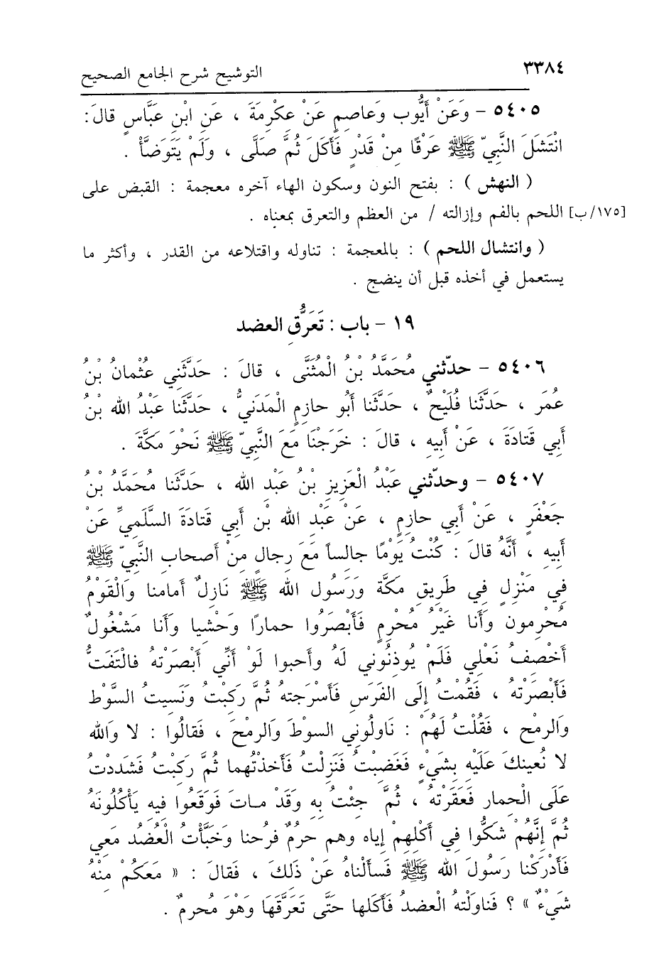 19 - بَابُ تَعَرُّقِ العَضُدِ