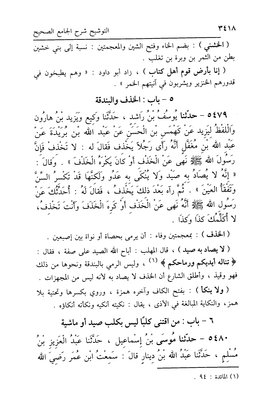 5 - بَابُ الخَذْفِ وَالبُنْدُقَةِ