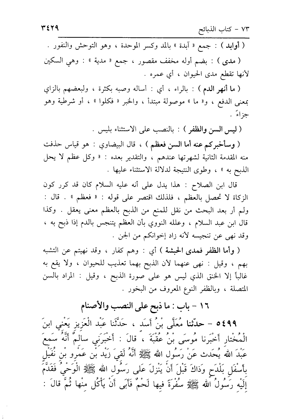 قال ابن الصلاح: هذا يدل على أنه عليه السلام كان قد كرر كون الزكاة لا تحصل بالعظم، فلذلك اقتصر على قوله: "فعظم". قال: ولم أر بعد البحث من نقل للمنع من الذبح بالعظم معنى يعقل. وكذا قال ابن عبد السلام، وعلله النووي بأن العظم يتنجس بالدم إذا ذبح به، وقد نهى عن تنجيسه لأنه زاد إخوانكم من الجن.
