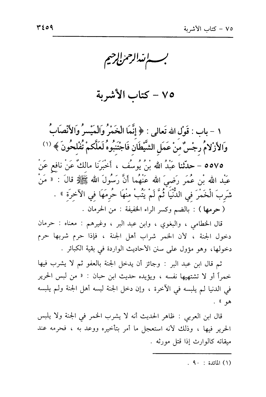 1 - بَابُ قَوْلِ اللَّهِ تَعَالَى: {إِنَّمَا الخَمْرُ وَالمَيْسِرُ وَالأَنْصَابُ وَالأَزْلاَمُ رِجْسٌ مِنْ عَمَلِ الشَّيْطَانِ، فَاجْتَنِبُوهُ لَعَلَّكُمْ تُفْلِحُونَ} [المائدة: 90]