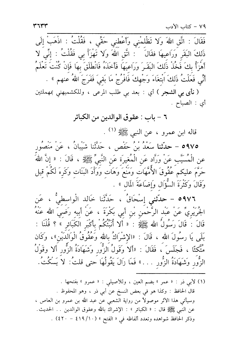 6 - بَابٌ: عُقُوقُ الوَالِدَيْنِ مِنَ الكَبَائِرِ