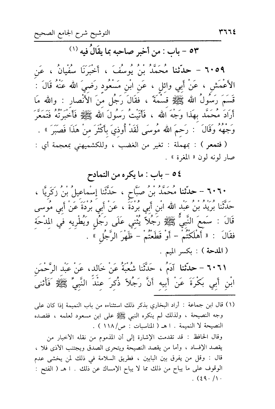 54 - بَابُ مَا يُكْرَهُ مِنَ التَّمَادُحِ