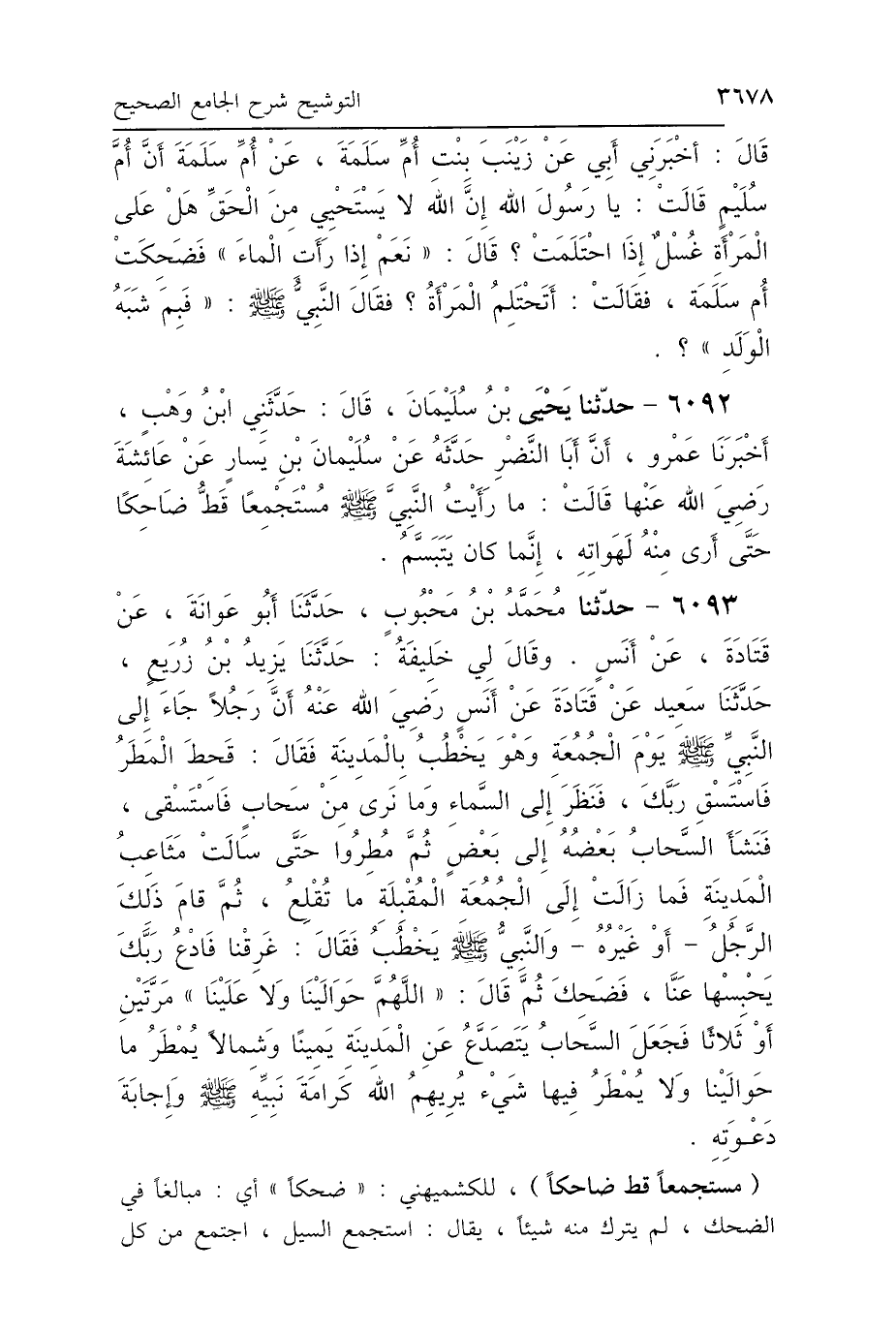 6092 - حَدَّثَنَا يَحْيَى بْنُ سُلَيْمَانَ، قَالَ: حَدَّثَنِي ابْنُ وَهْبٍ، أَخْبَرَنَا عَمْرٌو، أَنَّ أَبَا النَّضْرِ، حَدَّثَهُ عَنْ سُلَيْمَانَ بْنِ يَسَارٍ، عَنْ عَائِشَةَ رَضِيَ اللَّهُ عَنْهَا، قَالَتْ: «مَا رَأَيْتُ النَّبِيَّ صَلَّى اللهُ عَلَيْهِ وَسَلَّمَ مُسْتَجْمِعًا قَطُّ ضَاحِكًا، حَتَّى أَرَى مِنْهُ لَهَوَاتِهِ، إِنَّمَا كَانَ يَتَبَسَّمُ».