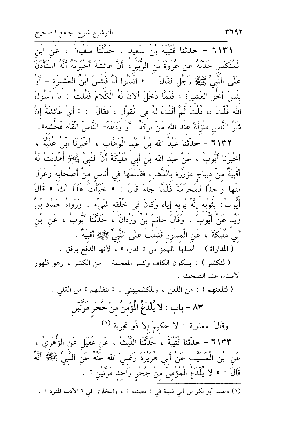 83 - بَابٌ: لاَ يُلْدَغُ المُؤْمِنُ مِنْ جُحْرٍ مَرَّتَيْنِ