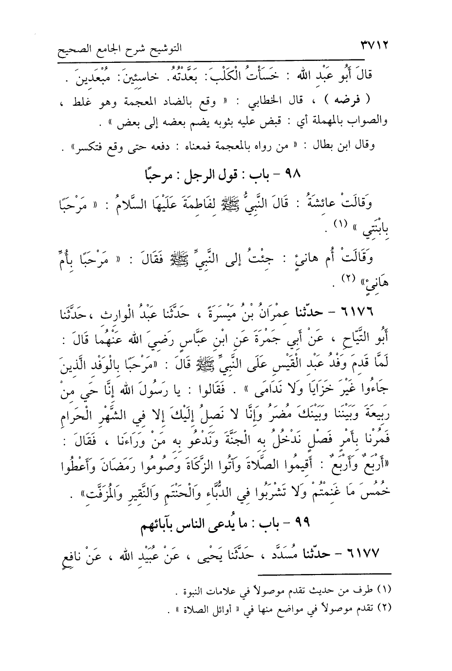 98 - بَابُ قَوْلِ الرَّجُلِ: مَرْحَبًا