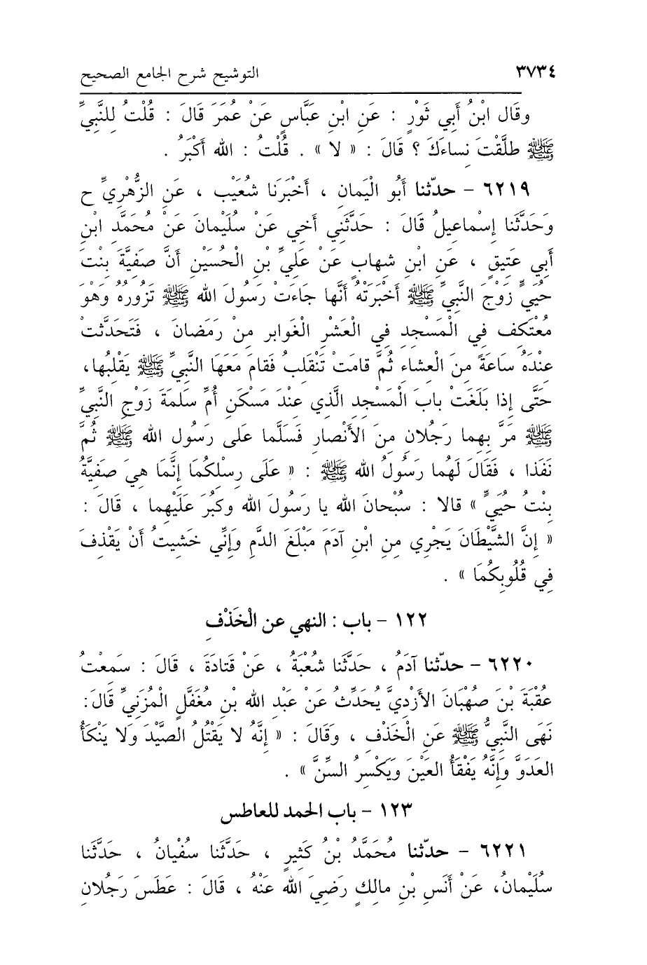 6221 - حَدَّثَنَا مُحَمَّدُ بْنُ كَثِيرٍ، حَدَّثَنَا سُفْيَانُ، حَدَّثَنَا سُلَيْمَانُ، عَنْ أَنَسِ بْنِ مَالِكٍ رَضِيَ اللَّهُ عَنْهُ، قَالَ: عَطَسَ رَجُلاَنِ