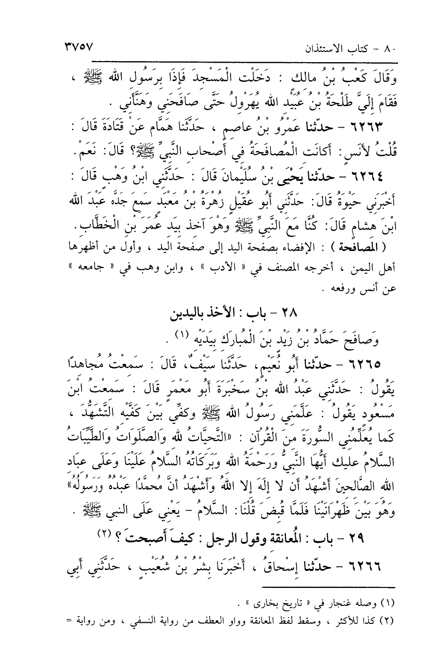 28 - بَابُ الأَخْذِ بِاليَدَيْنِ