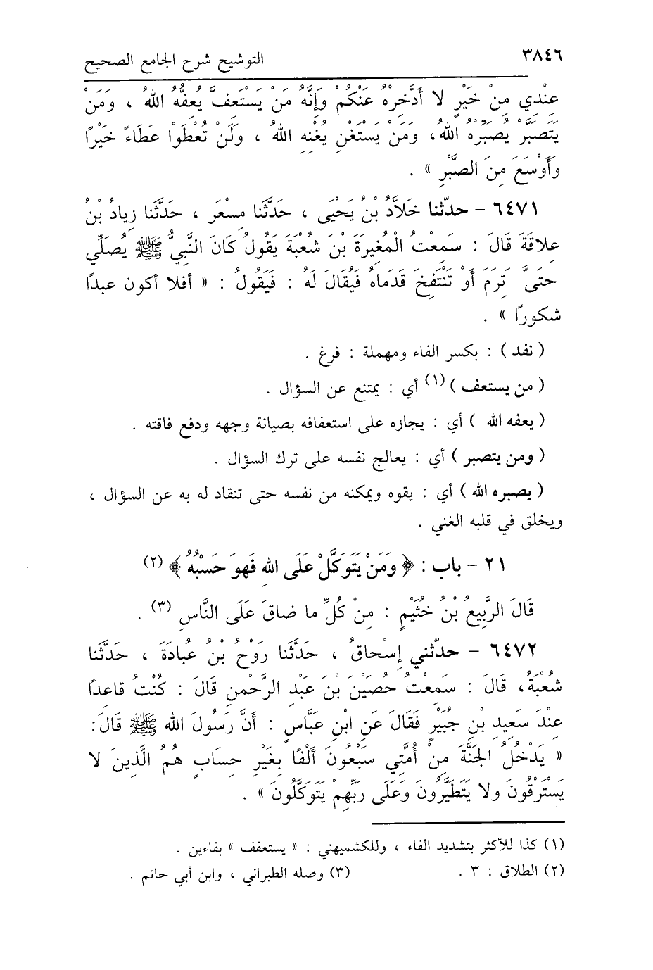 21 - بَابٌ: {وَمَنْ يَتَوَكَّلْ عَلَى اللَّهِ فَهُوَ حَسْبُهُ} [الطلاق: 3]