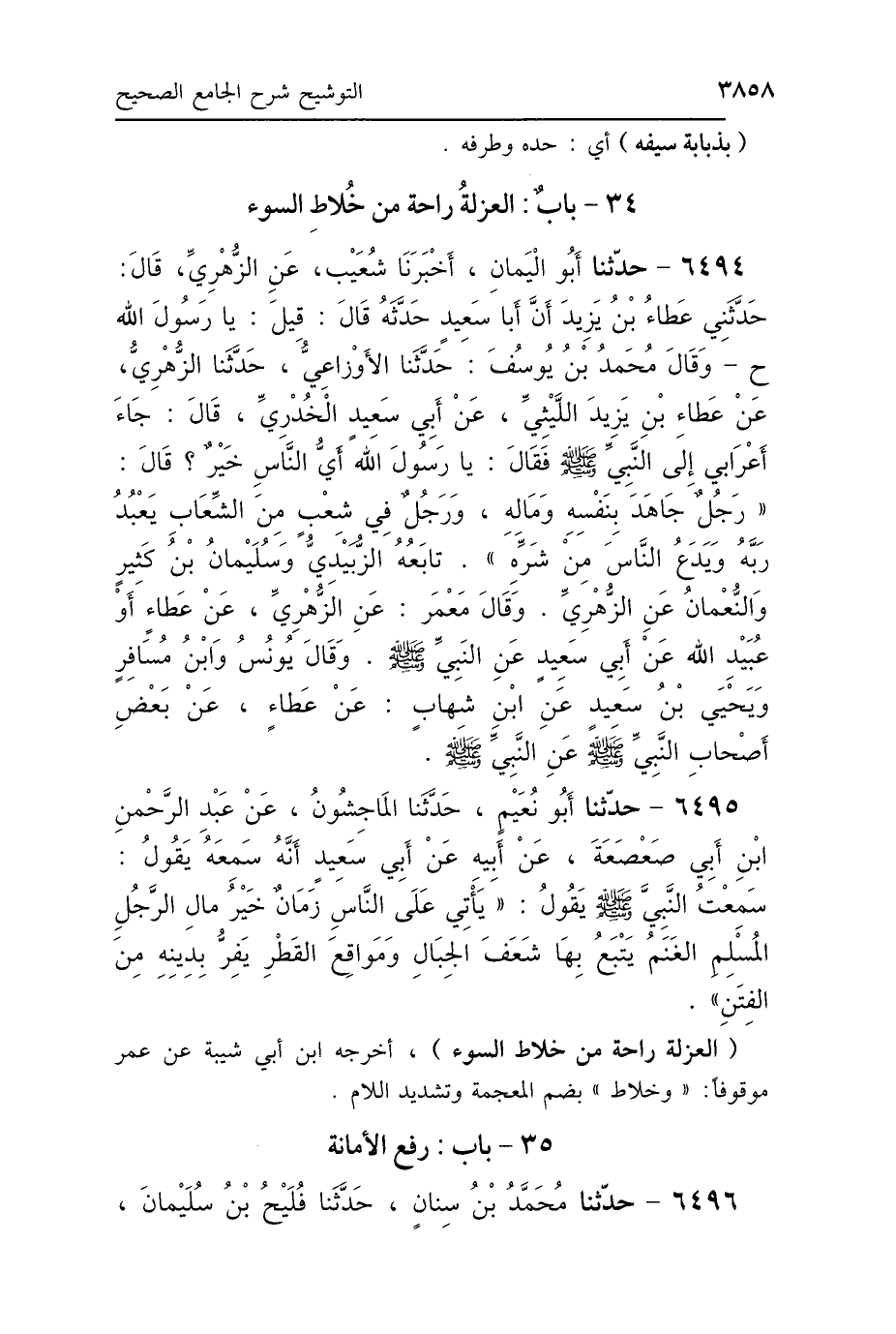 34 - بَابٌ: العُزْلَةُ رَاحَةٌ مِنْ خُلَّاطِ السُّوءِ